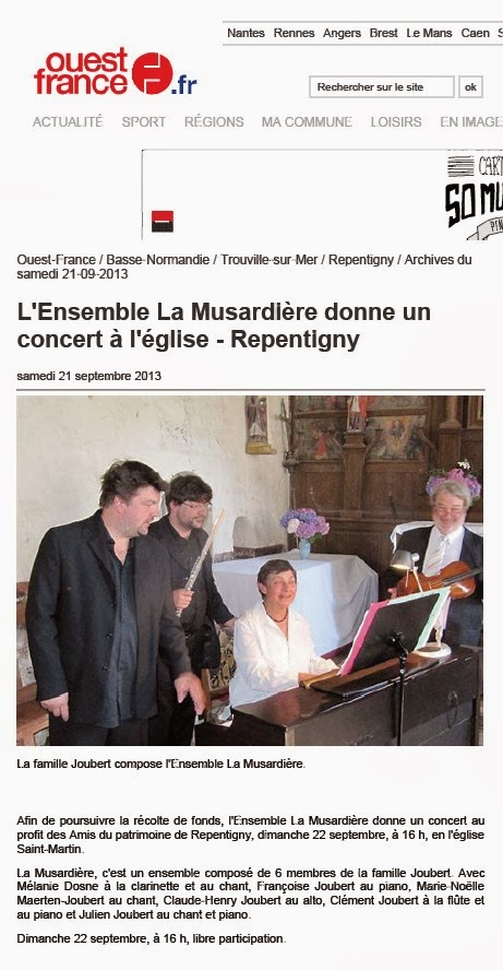 La famille Joubert, toutes générations confondues, des grands parents aux petits enfants, a une fois de plus « fait le show » et ravi la centaine de personnes présentes dans notre petite église ce dimanche 22 septembre 2013.