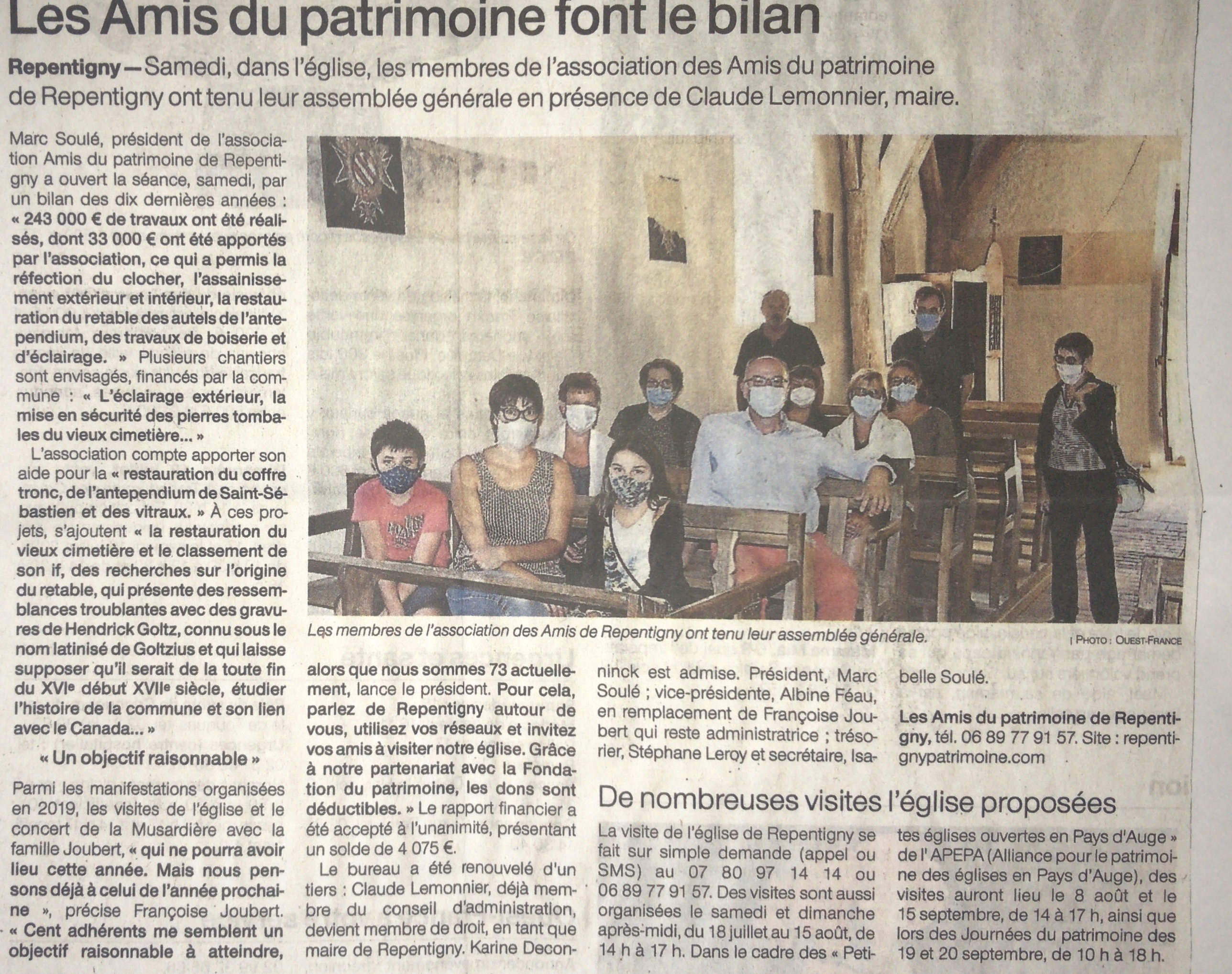 - Journées Européennes du Patrimoine : le 22 septembre 2019 de 10-12h et 14-18h à l’église