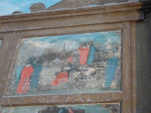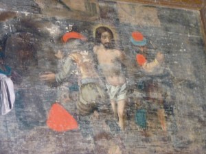 Apres la découverte en 2012 du verso des panneaux latéraux du retable, probablement des scènes de la vie de St Martin, M. Andronescu, notre restaurateur principal, a mis au jour, sous l’enduit moderne, ce qui promet d’être une autre révélation.