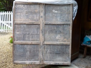 Les armoiries ont été peintes à l’huile sur papier épais, collé et cloué au mur.