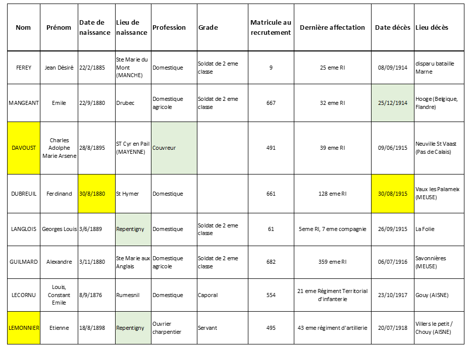 Ils sont 8. Ils avaient à peine 20 ans pour les plus jeunes. Ces enfants de Repentigny sont morts pour la France dans la guerre 1914-1918. Leurs noms sont gravés sur la plaque scellée au mur de l’église. Chaque année, depuis un siècle, à l’occasion de la fête patronale, ils sont cités. Aujourd’hui grâce aux archives nous essayons de mieux comprendre leur histoire et le sens de leur sacrifice.